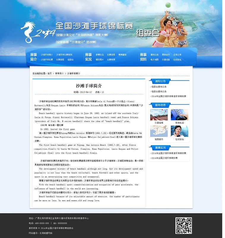 2014年全國沙灘手球錦標(biāo)賽組委會網(wǎng)站