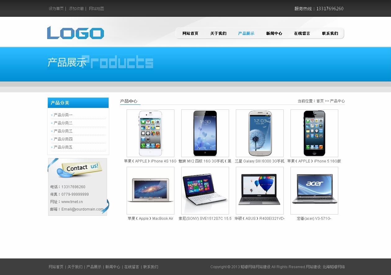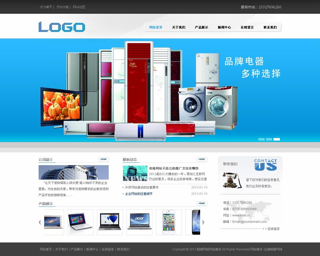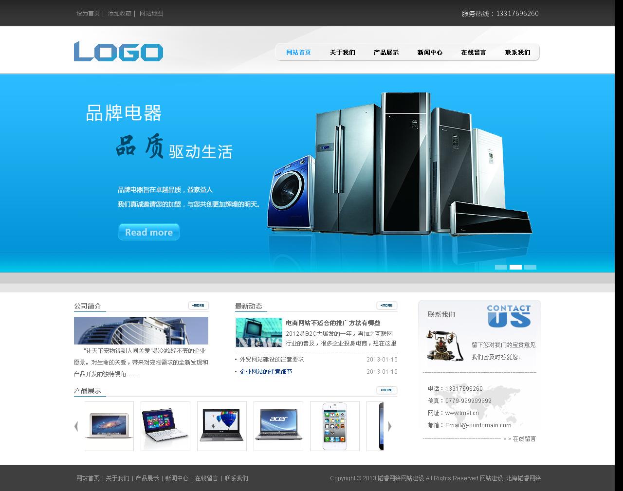 電器網(wǎng)站,藍(lán)色,簡約大氣
