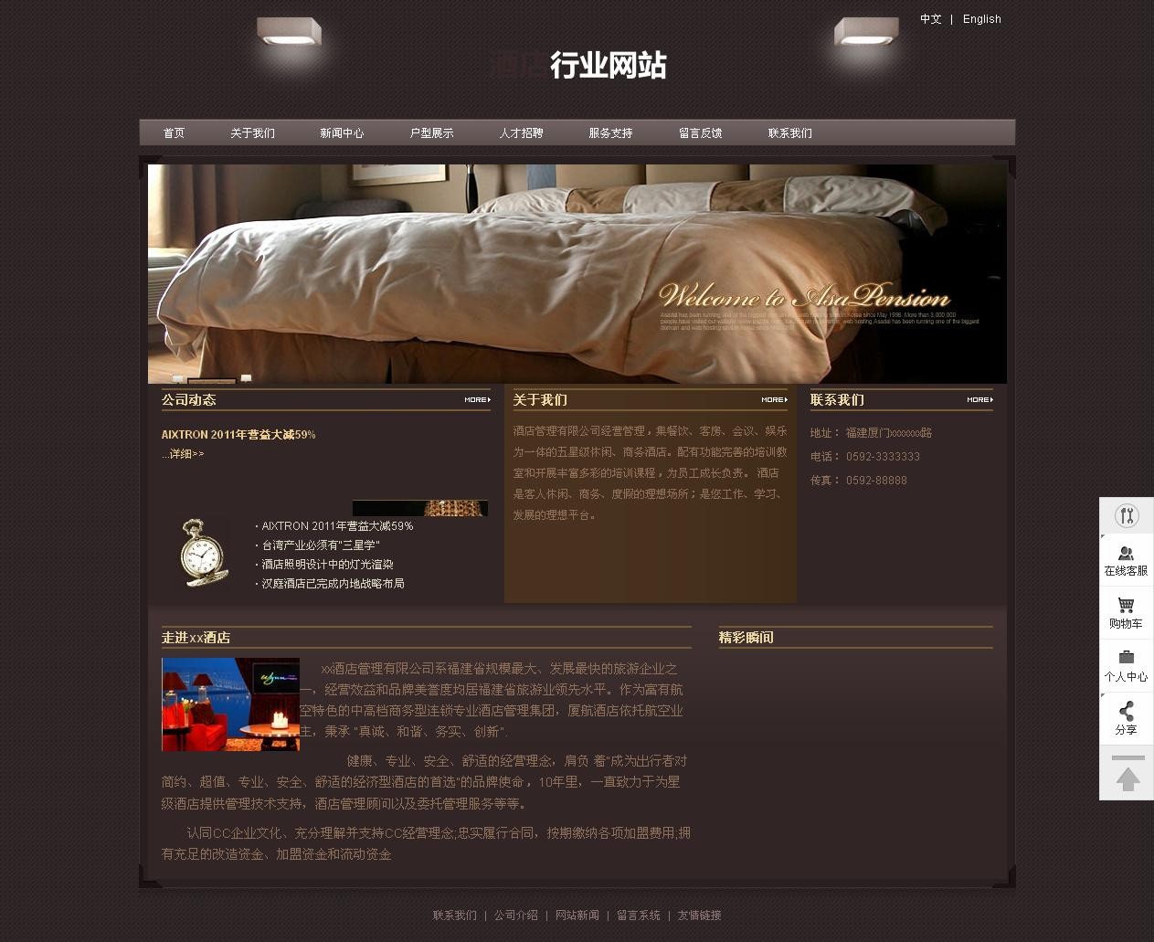 xx酒店管理有限公司系福建省規(guī)模最大、發(fā)展最快的旅游企業(yè)之一,經(jīng)營(yíng)效益和品牌美譽(yù)度均居福建省旅游業(yè)領(lǐng)先水平。作為富有航空特色的中高檔商務(wù)型連鎖專業(yè)酒店管理集團(tuán),廈航酒店依托航空業(yè)主,秉承 “真誠(chéng)、和諧、務(wù)實(shí)、創(chuàng)新”.