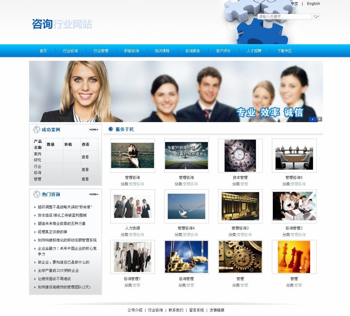 組織運營咨詢事業(yè)部: 企業(yè)全面管理診斷 戰(zhàn)略發(fā)展規(guī)劃 集團管控(母子公司管控) 流程優(yōu)化與再造 組織與職能設(shè)計 全面預(yù)算管理輔導人力資源咨詢事業(yè)部:人力資源管理診斷 崗位梳理與設(shè)計 崗位說明書編寫 工作分析與崗位評價 薪酬體系設(shè)計 績效管理體系設(shè)計 企業(yè)教育訓練體系輔導 干部梯隊建設(shè)輔導 股權(quán)激勵體系設(shè)計 定崗定編輔導 常年人力資源管理顧問